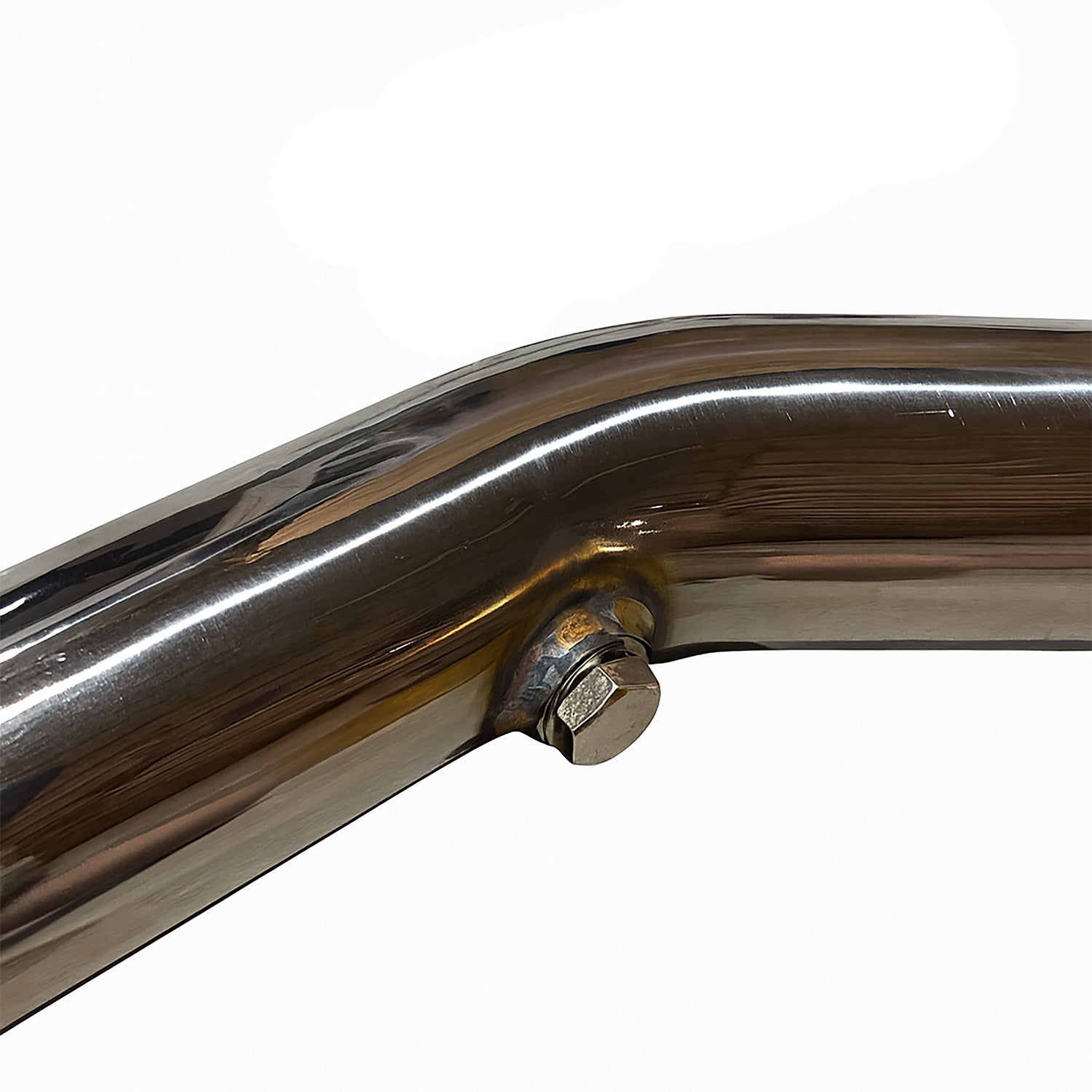 - Pipe Design: Our 2 piece downpipe configuration optimizes exhaust flow for improved power output.