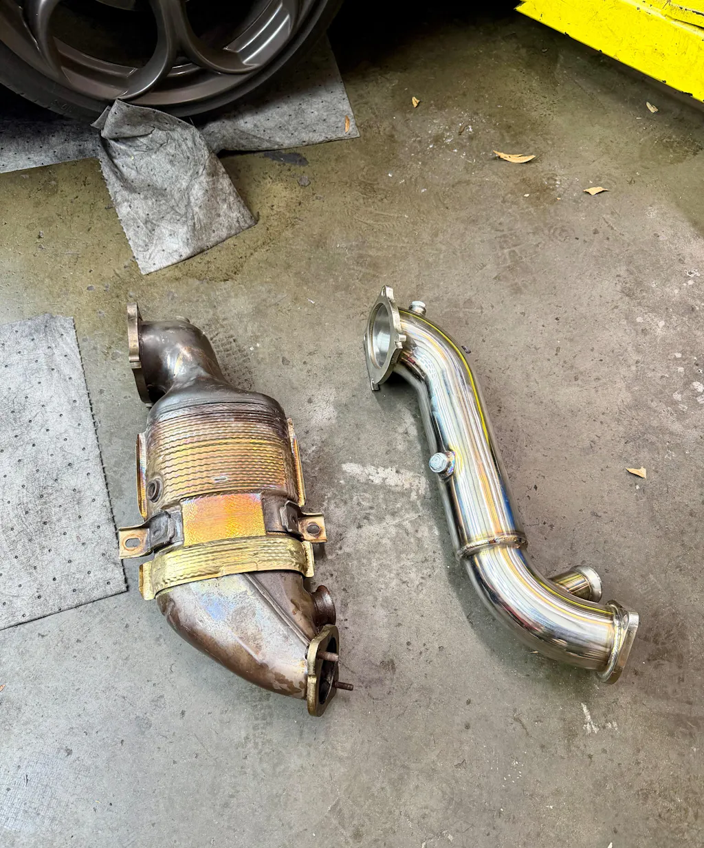 The removal of the factory was a nightmare lol but the installation of the new downpipe was flawless everything needed was there it was extremely fast shipping and I'm extremely satisfied with the product and price I 10/10 recommend thank you RNJ definitely get some more merch and designs I'll support 100%